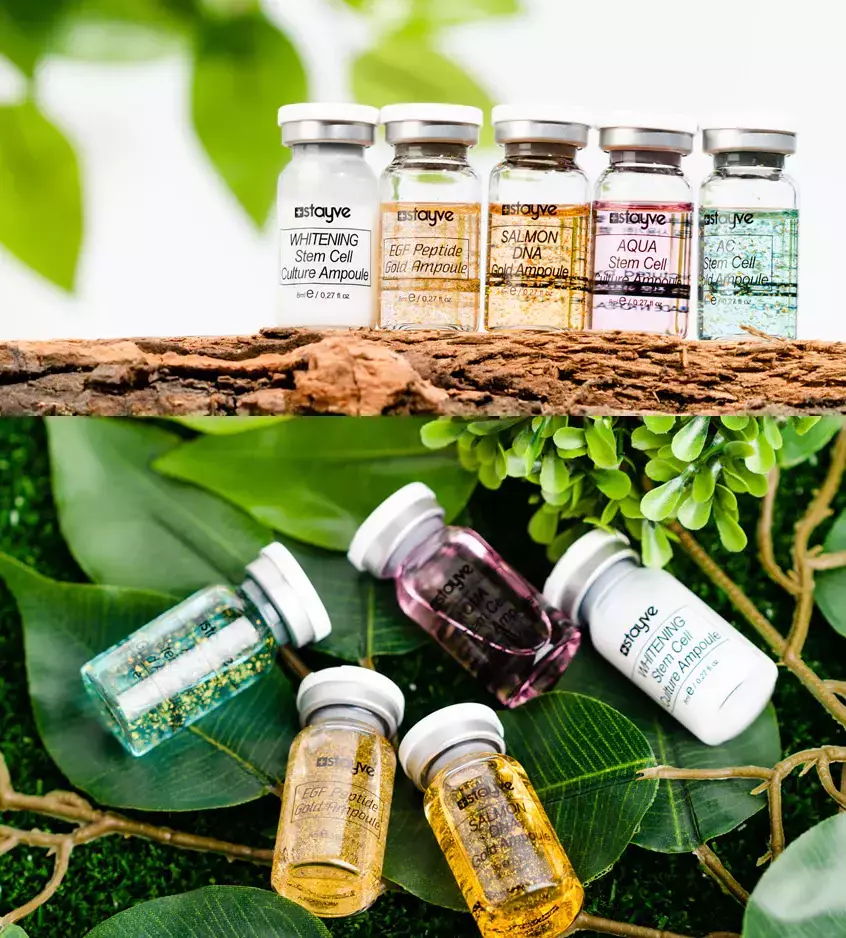 A Aqua Stem Cell é uma ampola de tratamento intensivo que combina extrato de células-tronco de uva, babosa e ácido hialurônico para restaurar a vitalidade da pele.